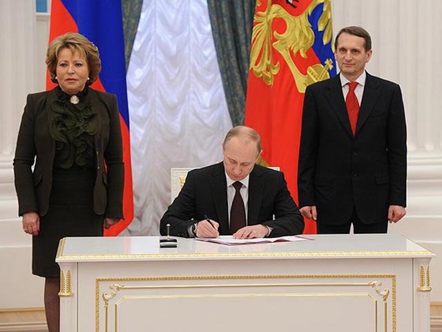 Президент России Владимир Путин подписал указ о создании Крымского федерального округа и назначил в нем своим полпредом Олега Белавенцева, о чем сообщил после подписания законов о присоединении Крыма к России. Также по указу главы государства в Москве, Симферополе и Севастополе 21 марта пройдет праздничный салют в честь образования нового субъекта в составе РФ. Между тем в Совете Федерации уже ждут назначения сенаторов от Крыма и Севастополя.