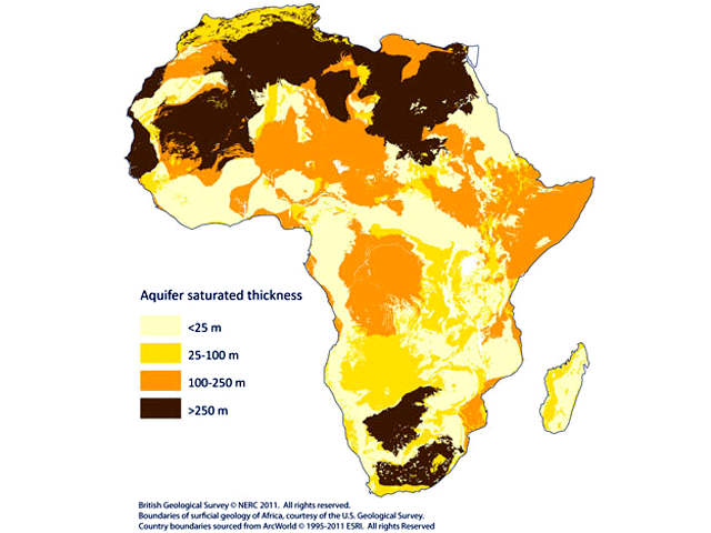 Исследователи Британского геологического совета и Лондонского университетского колледжа обосновывают свое мнение результатами обширного изучения Африки и картами мест залегания подземных вод, передает ИТАР-ТАСС. Наиболее крупные запасы подземных вод обнаружены в осадочных породах под Ливией, Алжиром и Чадом. Этих запасов достаточно, чтобы покрыть эти территории 75-метровой толщей воды.
