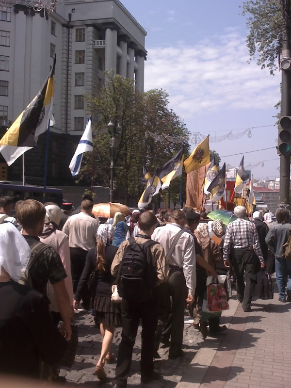 В Киеве состоялся покаянный крестный ход. Письмо в редакцию (ФОТО)В субботу, 19 мая состоялся крестный ход в Киеве в память царя нашего батюшки, искупителя Николая Александровича. После прочтения молитв православные участники трижды обошли Успенский собор, и через Святые врата крестный ход вышел на центральные улицы города. Движение проходило по ул. Грушевского, к Михайловскому Золотоверхнему монастырю и от площади Михайловской к Святой Софии.