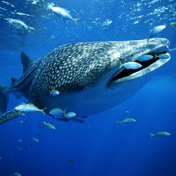 Китовые акулы – самые крупные рыбы из ныне живущих на планете, достигают более 10 метров в длину. Есть данные даже о 20 метровых экземплярах. Но они не представляют для человека никакой опасности. Питающиеся планктоном и мелкой рыбешкой китовые акулы находятся под угрозой исчезновения, а их численность по оценкам специалистов не превышает 1000 особей.