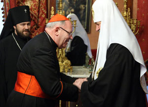 «История не знает, а мысль отказывается предполагать возможность совместного сослужения православных священников со священниками латинскими, старокатолическими, или же армянскими, потому что в нашем сознании живы прещения 45-го апостольского правила, которое предусматривает строгие санкции для молящихся совместно с еретиками и отлучение для тех, которые принимают священнодействия (требо-исправления), совершаемые их клириками.