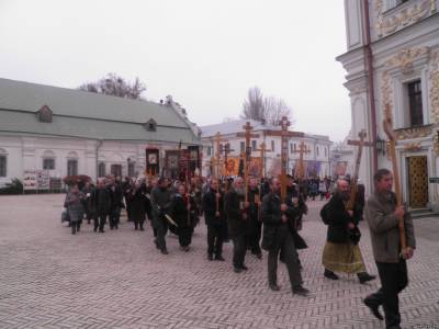 В этом году в Киево-Печерской Лавре, собралось около 1000 человек после, посещения митрополии Крестный ход прошел с молитвами по центральным улицам Киева.