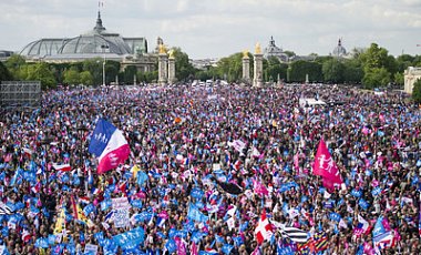 По данным полиции, в протестной акции участвовали около 150 тысяч человек, в то время как организаторы заявили об 1 млн собравшихся. Многие из участников пришли со своими детьми, несмотря на предостережения министра внутренних дел о возможных провокациях. Сама демонстрация прошла мирно, несмотря на присутствие праворадикальных сил, развернувших баннер, призывающий президента Франсуа Олланда подать в отставку, напротив штаб-квартиры социалистической партии. |