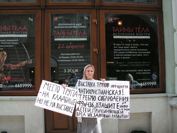 Братья и сестры, предлагаются обращения на имя организаторов выставки «Тайны тела. Вселенная внутри», которая с 27 апреля 2013г. по август 2013г. проходит в г. Москве, а также к светским органам власти РФ о запрете выставки манекенов, состоящихся из трупов людей.