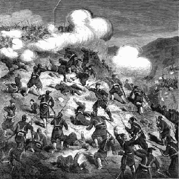 Так как здесь было не более трех-четырех тысяч, то отряд, свернувшись в каре, продолжал идти своей дорогой, отражая атаку за атакой. Но под вечер вдали показались главные силы персидской армии, от пятнадцати до двадцати тысяч, предводимые Аббас-Мирзой, наследником персидского царства. Продолжать дальнейшее движение русскому отряду стало невозможным, и Карягин, осмотревшись кругом, увидел на берегу Аскорани высокий курган с раскинутым на нем татарским кладбищем - место, удобное для обороны. Он поспешил его занять и, наскоро окопавшись рвом, загородил все доступы к кургану повозками из своего обоза. Персияне не замедлили повести атаку, и их ожесточенные приступы следовали один за другим без перерыва до самого наступления ночи. Карягин удержался на кладбище, но это стоило ему ста девяноста семи человек, то есть почти половины отряда.