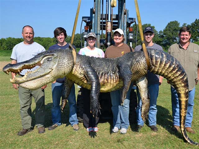 Вот это крокодил! (ФОТО)Жители Миссисипи поймали в реке аллигатора весом почти 330 кг. Это максимальный показатель для рептилий данного вида, которых когда-либо ловили в этом американском штате. Предыдущий рекорд составлял 316 кг, передает ИТАР-ТАСС со ссылкой на местные СМИ. Между тем по длине "обойти" предшественника 3,96-метровому пресмыкающемуся не удалось. Оно оказалось на 5 см короче, чем аллигатор, пойманный в 2008 году.