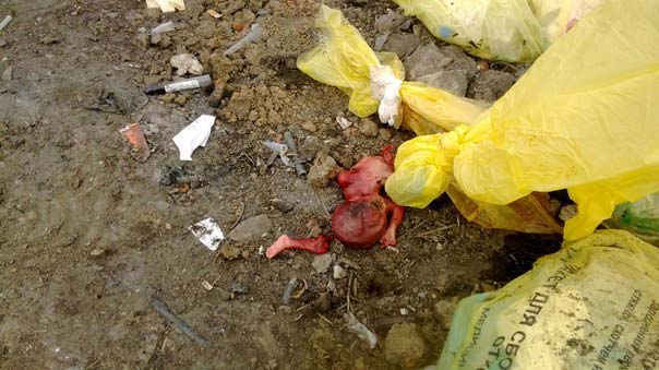 Огромная куча из полиэтиленовых пакетов желтого цвета с надписью "пакет для сбора и утилизации отходов медицинского назначения" с трупами нерожденных детей была свалена в обычную яму. "Многие пакеты были разорваны, и их содержимое, а это использованные резиновые перчатки, ватные шарики, системы для капельниц, пробирки для сбора анализов, одноразовые шприцы, человеческие эмбрионы и прочие отходы биологического происхождения, были в открытом доступе", - рассказал порталу "БК" сделавший страшную находку Михаил Малюгин.