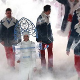 Сборная России вышла на арену стадиона Олимпийских игр в Сочи под микс из «Нас не догонят» скандально известной группы «Тату» и We Will Rock You в исполнении извращенца Фредди Меркьюри из Queen.