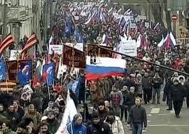 Шествие, которое в эти минуты проходит в центре столицы, имеет свое название – "Народный сход за братский народ". Неравнодушные к событиям в соседней Украине граждане России вышли на улицы Москвы, чтобы сказать слова поддержки народу, с которым у нас были традиционно исторически теплые и крепкие связи.