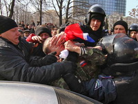 В ходе столкновений между митингующими в поддержку единства Украины и участниками пророссийской акции в Донецке погиб один человек, сообщает Reuters. Еще трое демонстрантов получили тяжелые травмы.
