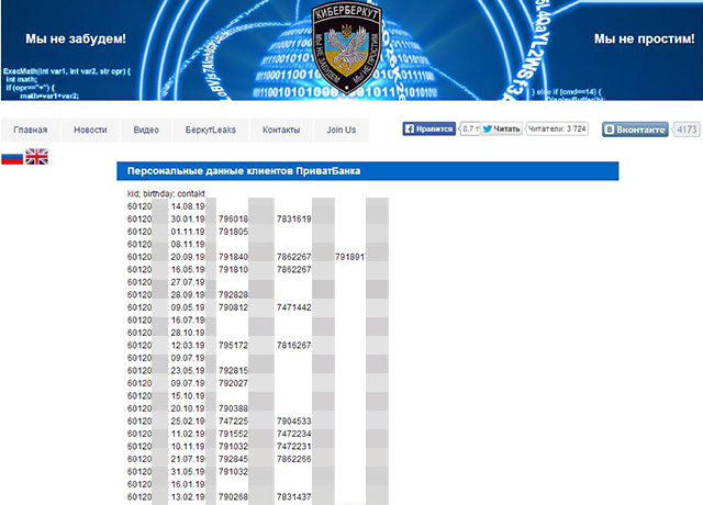 Первым делом "Кибер-Беркут" решил выложить в сеть телефонные номера вкладчиков и даты их рождения. Также они обратились к клиентам учреждения с просьбой закрыть свои счета и перевести деньги в любые другие государственные банки.