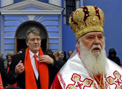 Напомним, что УПЦ КП - самочинная раскольническая церковная группировка, непризнанная и не принятая в евхаристическое общение ни одной поместной православной церковью является, тем не менее главной опорой украинских свидомитов, в том числе и на государственном уровне. Из ее рядов, так же как из униатского греко-католического «патриархата» рекрутируются капелланы в армейские подразделения, террбатальоны и сотни правосеков, от них каратели получают благословение на войну против «сепаратистов» и «московской орды». |