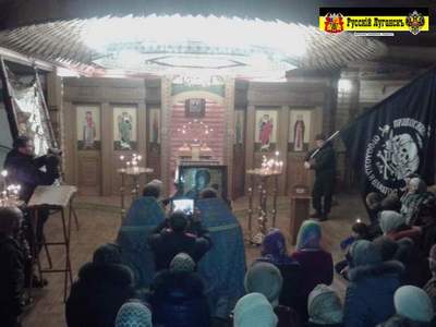С иконой приехали также и православные Хоругвеносцы. А встречали представители луганского ополчения, казаки, православные активисты республики. В честь прибытия святыни был организован Крестный ход, который завершился торжественным молебном в храме иконы Божией Матери «Умиление». Настоятель храма, протоиерей Александр, не оставивший город во все дни бомбежек, подчеркнул значимость сегодняшнего события для донбасской земли: