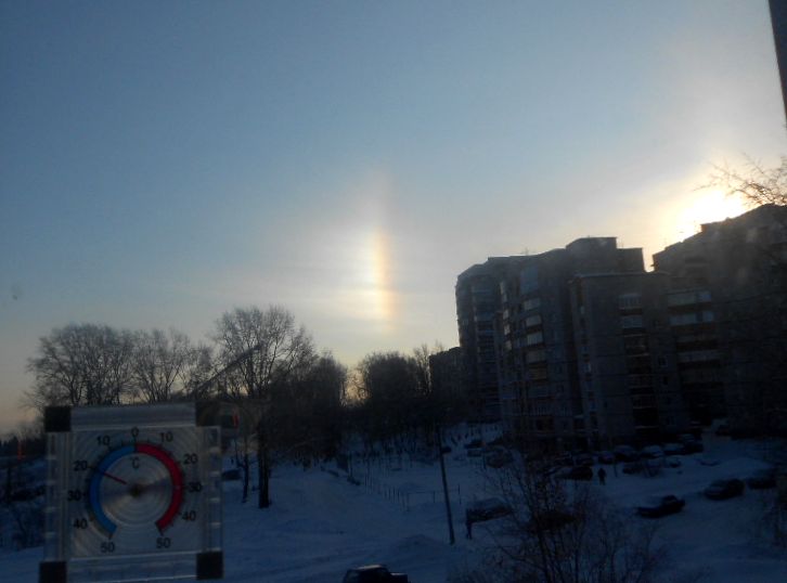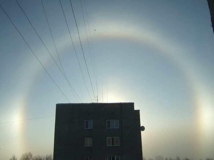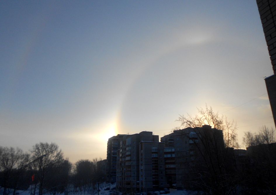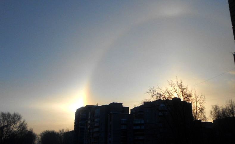 …В новогоднюю полночь в городе совершалось Богослужение еще в одном приходе – Божественная Литургия в храме в честь Иоанна Предтечи. А с утра 7 января 2015 года над нашим городом Господь даровал такое радостное явление - две радуги и в центре - солнце. Мороз был около -30. Видео-съемка: Фото: