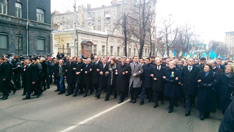 Украины Петр Порошенко.Телеканал АТН сообщает о двух погибших и десятке раненых. По данным издания, на улице маршала Жукова взорвалась заложенная на пути следования колонны бомба. Городской канал "Объектив.тв" передает, что взрыв произошел прямо в колонне активистов. На месте погибли два человека, один из них - активист "Евромайдана" Игорь Толмачев. Погибших накрыли флагами Украины. Кроме того, ранены два бойца батальона "Харьков-1", одна девушка, у которой была символика "Правого сектора", и милиционер. "Объектив" со ссылкой на очевидцев сообщает, что бомбу метнули в толпу из проезжавшего мимо автомобиля. В пресс-службе прокуратуры Харьковской области "Интерфаксу" сообщили о трех погибших. Корреспондент ТАСС сообщил, что один из пострадавших позднее скончался в автомобиле "скорой". Последствия взрыва запечатлены на видео-трансляции харьковской организации "IT-сектор" с марша. Городской сайт 057 указывает, что мина была начинена металлическими осколками. IT-сектор в своем Twitter-аккаунте подтверждает информацию о гибели Толмачева. В шествии в Харькове принимали участие около 400 человек. Акции памяти сегодня намечены во многих крупных городах Украины. Главная проходит в столице страны Киеве. Как передает "Европейская правда", на "Марш достоинства" прибыли европейские лидеры: президент Польши Бронислав Коморовский, президент Литвы Даля Грибаускайте, президент Словакии Андрей Киска, а также глава Евросовета Дональд Туск. ![]() Сайт УНН приводит полный список европейских лидеров, прибывших в столицу Украины. Шествие в Киеве началось в 14:30 по московскому времени. |