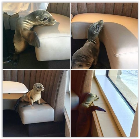 Шеф-повар ресторана, расположенного в Сан-Диего, выложил фото морского львенка в социальной сети, подписав, что детеныш пришел немного раньше зарезервированного времени. Долго не мучая животное активным вниманием со стороны посетителей,