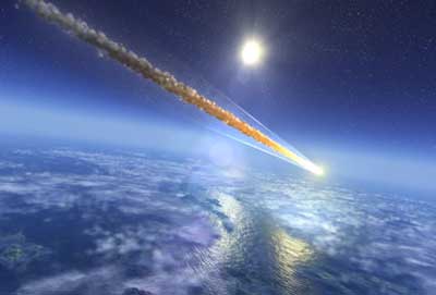 врезался в землю. Когда он попадает в атмосферу, начинает сгорать. Он