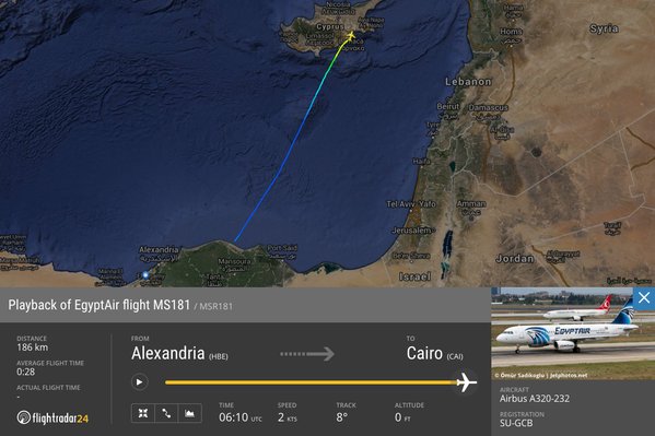 выполнявший рейс из Александрии в Каир, во вторник захвачен неизвестными