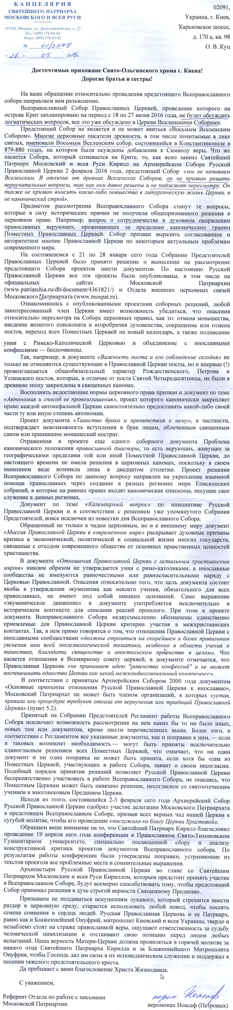 от референта Московской патриархии иеромонаха Иоасафа и сами сделайте выводы.