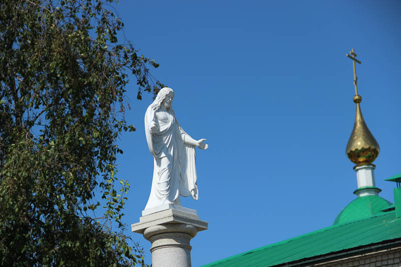 статуи. Последняя статуя Иисусу Христу установлена в строящемся среднебельском