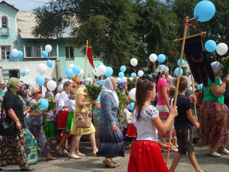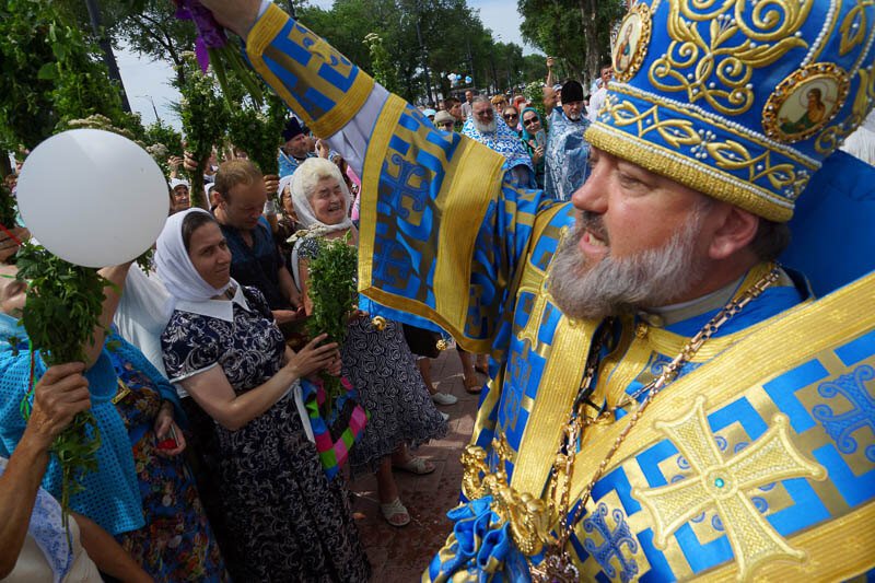 ![]() ![]() ![]() Оркестр играет марши и вальсы. Напоминает ДЕМОНстрацию в советские времена. Как всегда Флаги реют над народом. ![]() ![]() Разноцветные ленты рвутся в небеса. Ленты на хоругвях новый атрибут праздников от епископа Лукиана. Воздушные шарики, как же без них!!! Проще нести шарик, чем икону. ![]() В одной руке веник, в другой шарик, до икон ли?! В уши оркестр, как легко переключить людей с молитвы на подобные развлечения. Девочка повесила шарик на хоругвь - взрослые научили.