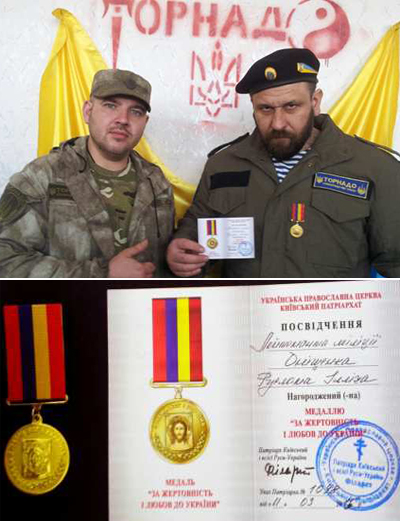 «за любовь и жертвенность к Украине».Напомним, что к моменту своего награждения церковной наградной медалью лейтенант МВД Украины Онищенко (настоящая фамилия — Абальмаз) был уже неоднократно судим за насилия и разбои. Впрочем, это не единственный прокол «коммерческого патриархата», который необходимо рассматривать в т. ч. и в духовном измерении. Так, в 2015 году самоназначенный «патриарх» Филарет наградил своей медалью погибшего на Донбассе грузинского неонациста с позывным… «Сатана». Впрочем, к анафеме заявлявшему, что убийство жителей Донбасса не является нарушением Заповеди Божьей «НЕ УБИЙ», не привыкать, ведь наградил же он медалью карателя с позывным «Сатана». https://rusvesna.su/news/1470572297 И вот снова возникает законный вопрос к митр.Онуфрию: "Как же можно было целоваться и молиться с анафематствованным Филаретом?" Господи помилуй!