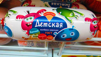 Сатанизм плотно входит в российскую действительность. Детская колбаска с монстрами. (ФОТО)В настоящее время агенты «нового мирового порядка», занимающиеся проблемами сатанизации населения России и, в первую очередь, детей, придумывают новые способы и средства пропаганды сатанизма. Значительное количество мультфильмов, идущих по каналам РФ, так или