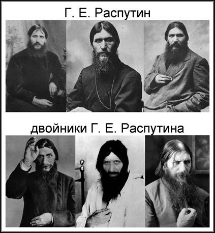 Для создания образа Распутина как пьяницы, хлыста и развратного человека работали его двойники. На встречу с двойником с его поклонницами приглашались авторитетные журналисты и писатели, чтобы они впоследствии написали и рассказали знакомым о поведении Распутина (воспоминания писательницы Н.А.Тэффи). О существовании двойника свидетельствовал и атаман войска донского граф Д.М.Граббе, рассказывавший о том, как вскоре после убийства Распутина его пригласил к завтраку известный князь Андронников, якобы обделывавший дела через Распутина.