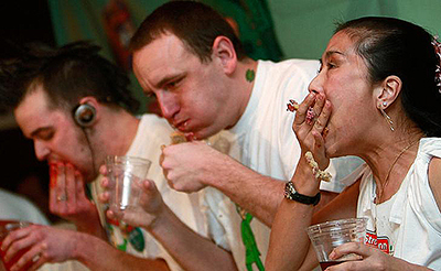 по скоростному поеданию - это попытки съесть слишком много и слишком