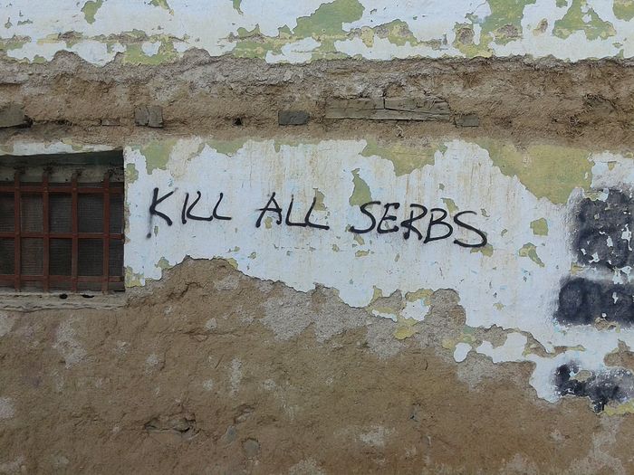 "Убей, зарежь серба!". Угрожающие надписи появились на сербских объектах в КосовоГраффити с угрозами появились сегодня на здании, принадлежащем Сербской Православной Церкви, в городе Гнилане.