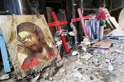 Подлинное чудо в православном храме Мосула. Образ Христа уцелел после нападения ИГИЛОбраз Христа чудесным образом уцелел в православном храме Мосула (север