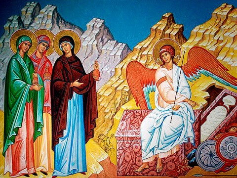 ОТВАГА И МУЖЕСТВО ЖЁН-МИРОНОСИЦ. Часть 1. Архимандрит Клеопа (Илие)И пришла Мария Магдалина и возвестила ученикам, что видела Господа...(ср. Ин. 20, 18). Возлюбленные верующие! Из великих добродетелей, украшавших жизнь святых Жён-Мироносиц, самыми яркими были их святая ревность о Христе, благоговение и мужество души. Какую охрану и укрепления ставили иудеи с Пилатом у Гроба Христа, Спаса нашего, чтобы ночью не пришли ученики и не украли Его! Огромный камень привалили ко Гробу Господню, печатями опечатали этот камень, крепких и вооруженных воинов поставили на стражу. Но только всё это не напугало и не ужаснуло святых Жён-Мироносиц. Их великая ревность, священное благоговение и мужество души перешагнули через все препятствия иудеев, их решимости не поколебала вся стража Гроба. Одна только мысль, одно только желание руководило их умом и сердцем — со всецелой верой и благоговением послужить погребению Дражайшего Спасителя.Одно только желание руководило их умом и сердцем — послужить погребению Спасителя. Соломон некогда сказал: Мужчину одного из тысячи я нашел, а женщину между всеми ими не нашел (Еккл. 7, 28). Но вот, здесь женщины, которые мужественнее мужчин. Мужчины, ученики Христа, попрятались страха ради иудейского. Петр, горячий и твердый в вере, — и тот трижды отрекся от Господа, в чем потом каялся и горько плакал (ср. Лк. 22, 62). А женщины, по природе своей боязливые и немощные и часто боящиеся чего-то даже там, где нет опасности, здесь, на служении погребению Пресвятого Спасителя нашего, оказываются крепче и мужественнее мужчин. Они не боятся ярости иудейской, грубости воинов не страшатся, и стража на Гробе Господнем тоже не волнует их сердце. Ученики, мужчины, пугаются и разбегаются врассыпную, как предрекал им Спаситель до этого. А святые жены собираются. Те прячутся, а они выходят на свет Божий, направляются на рынок и покупают миро и ароматы, чтобы помазать Живоносное Тело Христа. О, блаженные женщины, как же вы не испугались и ходите ночью одни, и как дерзнули подойти к тому месту, которое охраняли царские воины, и как не устрашились, но пытаетесь отвалить камень, взломать печати, открыть гроб и помазать ароматами Тело Господне? Эти подвиги ваши проистекали из ревности, благоговения и великого мужества ваших душ! Немощными женщинами были вы по природе, но не по уму и сердцу вашему, ибо ни в чем не проявилась у вас немощь женская, но все ваши подвиги превзошли мужество мужчин. На вас воистину исполнилось слово Писания, которое гласит: сила Моя в немощи совершается (2 Кор. 12, 9), и еще: немощное мира избрал Бог, чтобы посрамить сильное (1 Кор. 1, 27; ср. Пс. 8, 2; Мф. 21, 16). В вашем сердце воистину были слова Пресвятого Спаса нашего, Который сказал: не бойтесь убивающих тело, души же не могущих убить (Мф. 10, 28). И еще говорит Дух Святой: Мужайтеся, и да крепится сердце ваше, вси уповающии на Господа (Пс. 30, 25). Вы раньше апостолов дело апостолов совершили. Вы раньше святых мучеников их веру и мужество души явили! Илия, великий пророк, воспылав Божественной ревностью, Ахава обличил, а вы охранявших Гроб Господень посрамили. Гедеон некогда с тремя сотнями солдат многочисленное войско мадианитян сокрушил (ср. Суд. 7, 25). Вы же, вместе с праведными мужами Иосифом и Никодимом, сильнее всех укреплений иудеев и Пилата оказались и бесстрашными служительницами стали, готовыми 