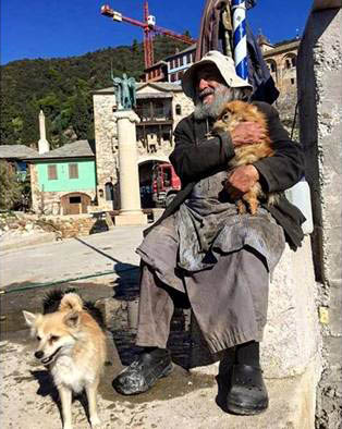 Это что на Святом Афоне происходит или в какой-то мусульманской стране?! Прошу, ответьте, отцы Кутлумуша и Кинотиса! Афонские Старцы-исповедники Геронда Гавриил Карейский и геронда Иларион Святогорец проживают на территории монастыря Кутлумуш. К Геронде Гавриилу приходили антипросопы из Кинотиса и оказывали на него сильное давление, чтобы он был как все, чтобы он не смущал своим непоминанием, чтобы возвращался к поминанию, что все монастыри поминают и приводили ему всякие другие доводы. Слава Богу! Старец Гавриил смиренно выслушал их, но непоколебимо остаётся на исповедническом пути непоминания еретиков-экуменистов. ![]() Старец Гавриил Карейский смиренно, но с твёрдой решимостью стоит за Веру, с любовию принимает и исповедников и поминающих, свидетельствует об Истине Христовой всем, ибо любит всех. Антипросопам не удалось переубедить Божиего Старца, но Геронда Гавриил по смирению вместе со своим соседом Герондой Иларионом молились об этом вопросе, они спрашивали у Бога, принимает ли Богъ их стояние за Православную Веру, правильно ли непоминание экуменистов? ![]() Старец Иларион получил извещение от Бога в молитве, что путь непоминания еретиков-экуменистов – это путь Богу угодный! Так Старцы Божии не только на основании Святых Канонов, Святоотеческих творений и Церковной истории, но и благодатным словом от Духа Святаго, полученного в живом молитвенном вопрошении Бога Живаго, свидетельствуют всем сомневающимся и колеблющимся, и утверждают сегодня всех Православных Христиан во вселенной, что путь Исповедничества – это путь Богу угодный, а не раскольнический! После Критского лжесобора Батюшка Рафаил, греш. Онуфрiй и ещё двое наших монахов поехали к Старцу Гавриилу, чтобы побеседовать с ним о пути исповедничества и о других насущных вопросах. По дороге в лесу мы встретили игумена монастыря Дохиар, архим. Григория, который прогуливался с послушником и своими собачками. ![]() Мы попросили нашего