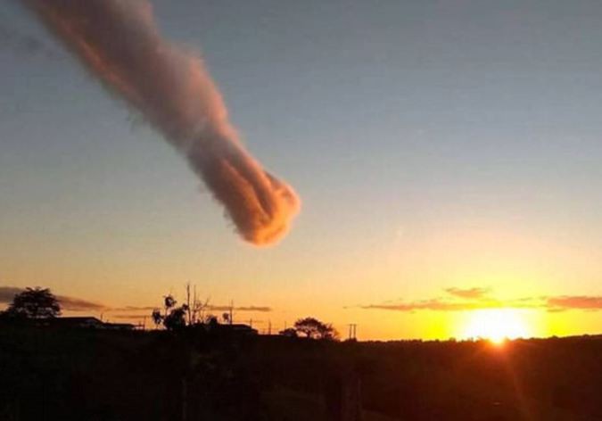Необычное облако... Над Бразилией заметили «кулак Бога». (ВИДЕО)Жители бразильского города Тейшейра-де-Фрейтас приняли за метеорит или торнадо огромное облако странной вытянутой формы. Позже в социальных сетях необычное природное явление окрестили кулаком Бога. «Это образование торнадо или след от метеорита?» — гадают в своих блогах местные жители.