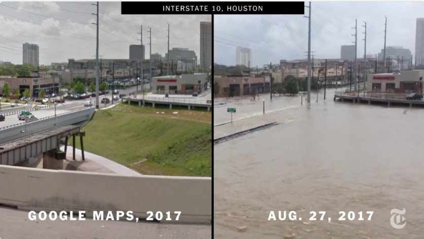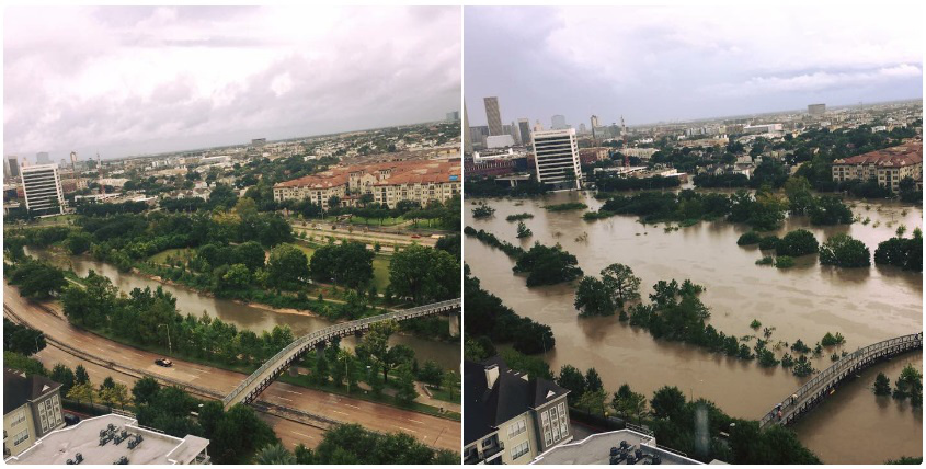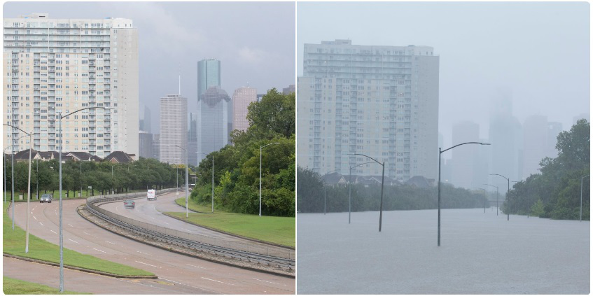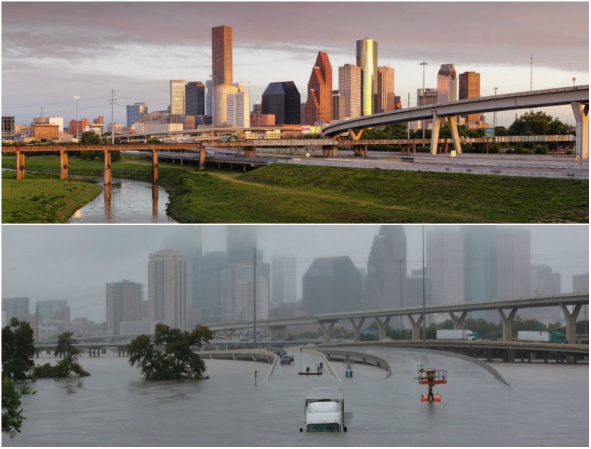 Несколько дней назад на крупнейший город штата Техас и четвертый по величине город США Хьюстон обрушился тропический шторм «Харви». К шторму и последовавшему за ним наводнению готовились, их ждали (вот, кстати, тревожное видео «Харви» из космоса): из наиболее опасных зон были заранее эвакуированы люди, организованы центры медпомощи, школы закрыты, а работа общественного транспорта приостановлена. Но даже несмотря на такую подготовку, стихийное бедствие нанесло городу и жителям огромные финансовые потери — о моральной травме и говорить нечего. Впрочем, для того, чтобы понять, как изменилась жизнь жителей Хьюстона достаточно взглянуть на эти 9 фотографий, сделанных до и после наводнения. Велика