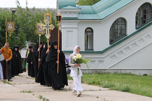 "В день памяти прп. Романа Киржачского в Свято-Благовещенском женском монастыре прошло праздничное Богослужение, которое возглавил Архиепископ Александровский и Юрьев-Польский Евстафий в сослужении духовенства Киржачского благочиния. В храме было много молящихся, многие приехали издалека и целыми семьями. По завершении Божественной Литургии состоялся Крестный ход по центральной части города. По завершении Крестного хода все прошли в храм-усыпальницу прп. Романа Киржачского, где смогли приложиться к его мощам". На трех из прилагаемых к сообщению фотоснимках запечатлена возглавляющая монастырский Крестный ход девочка с цветами в белом платье, идущая впереди фонаря. По церковной традиции, фонарь – застекленный светильник со свечой внутри, укрепленный на длинной рукояти. Выносится на богослужении впереди крестного хода. Фонарь символизирует пламень веры, свет Христов, просвещающий всех. Пасхальный крестный ход с фонарём впереди напоминает нам шествие жен-мироносиц, которые, направляясь ночью ко гробу Господню, по преданию, освящали себе путь светильником. Кого или что символизирует девочка с букетом, непонятно. ![]() ![]() |
