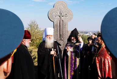 способствовали процветанию отчизны.«Здесь, на Мамаевом кургане нас утешает чувство священности вверенного нам предками наследия, которое именуется братством. Возносим молитву о нерушимости этого братства, построенного на взаимной любви, доверии и сотрудничестве, во имя созидания и благополучной жизни двух наших стран и народов. Армянская Церковь не осталась в стороне от завоевания столь дорогого мира, но всеми силами и возможностями приближала его», – в своей речи отметил глава епархии. На торжественной церемонии присутствовал также митрополит Волгоградский и Камышинский Герман, генеральный консул Республики Армении в ЮФУ Российской Федерации Вардан Асоян, помощник почетного консула Армении в РФ по Волгоградской области Ашот Григорян, мэр города Волгограда Андрей Косолапов, генерал-лейтенант Норат Тер-Григорьянц, общественные и политические деятели, представители городской власти и армянской общины. Волгоградский Владыка у новоосвященного ритуального армянского символа «Вечности» в частности сказал: "Сюда приходят многие, чтобы отдать долг памяти нашим павшим героям и чтобы вдохновиться на свои личные подвиги в жизни согласно христианским заповедям". |