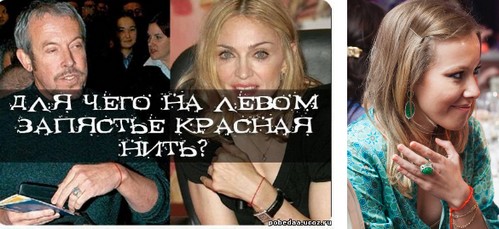 КРАСНАЯ НИТЬ НА ЗАПЯСТЬЕ... У многих вижу этот иудейский маркер апокалипсиса на руках. Письмо в РедакциюСейчас стало очень модным повязывать красную нить на запястье. Одни говорят, что это мощнейший амулет от сглаза, другие – что это помогает против телесных недуг, третьи точно знают, что это принадлежность к учению каббалы. Знаменитости и представители шоу-бизнеса почти все поголовно повязаны этой нитью, даже политики самого важного уровня тоже не стесняются ее носить, что уж говорить о простых людях, которые, глядя на своих кумиров, тоже повязывают ее на свою руку.Давайте разберемся, что в себе таит этот «талисман»? Красная нить – это отнюдь не безобидный оберег, это иудейский каббалистический талисман в виде красной шерстяной нити, которая завязывается вокруг запястья левой руки. Рекомендуется, чтобы нить завязывал близкий человек и обязательно сделал бы семь узлов, произнося особую молитву. Так же важно, чтобы нить была куплена за деньги, а не сплетена собственными руками. Предполагается, что данный талисман может защитить от зависти и сглаза. В начале XXI века красная нить приобрела популярность среди звезд американского шоу-бизнеса (Бритни Спирс, Мадонна) и стала символизировать увлечение каббалой. Это увлечение дошло и до России. Согласно поверьям каббалистов, красная шерстяная нить, завязанная на запястье близким родственником или возлюбленным, – сильнейший оберег от сглаза и людской зависти. Каббалисты считают, что негативная энергетика проникает в тело и ауру человека через левую руку. Повязывая оберег на левом запястье, вы отпугиваете все зло, которое вам направляется людьми и сверхъестественными существами. Для последователей каббалы этот обычай значит очень много, они носят на запястье лишь ниточки, привезенные из священных мест. Есть еще более невероятное представление об этом талисмане. Каббалисты придумали, что эта нить пошла от ветхозаветной Рахили, любимой жены Иакова, что, оказывается, когда она молила Бога о даровании детей, ей явился ангел и указал решение проблемы – красную нить. И что потом, получив от ангела эту нить, у Рахиль решились все проблемы, она родила Иакову двух сыновей. Сразу стоит оговориться, что это все выдумки каббалистов.В Ветхом завете абсолютно ничего такого подобного нет. Рождение детей у Иакова было осуществлено Промыслом Божиим, и Рахиль родила тогда, когда Бог вспомнил о ней и отверз ее утробу: «И вспомнил Бог о Рахили, и услышал ее Бог, и отверз утробу ее». (Быт. 30:22). Однако же эта ложь по поводу Рахили и красной нити всячески насаждается каббалистами и по сей день для придания сверхдревности этой «традиции». Более того, каббалистическая нить имеет несколько цветов, помимо красного. Она может быть синяя, зеленая, золотая, розовая и т. д. И все они «отвечают» за свое благополучие – здоровье, мудрость, богатство и т. д. Примечательно, что, как было указано выше, чтобы эта нить «работала» – ее обязательно нужно купить за деньги. Если взять обычную шерстяную нить и повязать ее – такой талисман не котируется. Кому же это надо? Стоит отметить, что глава центра каббалы – раввин Филип Берг – ловкий предприниматель, не упускающий ни одной возможности заработать деньги. Поэтому центр каббалы Лос-Анджелеса – мощное торговое предприятие. Там берут деньги за всё. Один только вступительный курс 