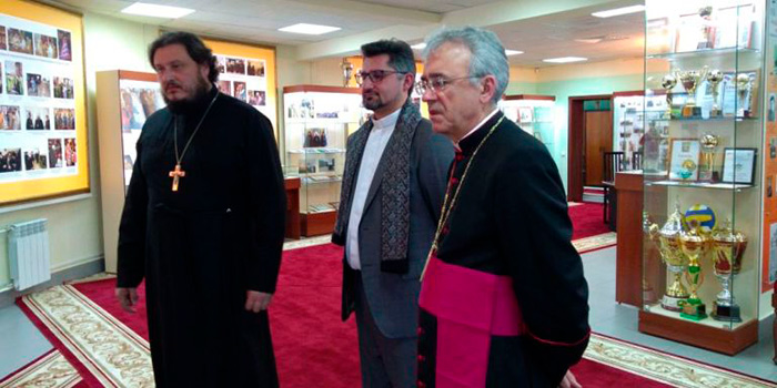 Также были обсуждены моменты сотрудничества Католической и Православной Церквей в сфере образования, обмена преподавателями (!!!) и группами учащихся. Были решены некоторые практические вопросы по межконфессиональной поддержке Кемеровской православной гимназии и Кузбасской духовной семинарии. ![]() В дальнейшем участники встречи отобедали в банкетном зале Кемеровского епархиального управления и совершили экскурсию в Музей Православия на земле Кузнецкой.
