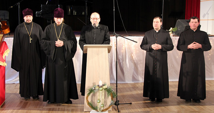 Мероприятие открыла руководитель Народного дома Солвита Пливча, которая приветствовала всех собравшихся. Затем торжественно прозвучал Гимн Латвийского Государства. После этого православные священнослужители совершили молебен святителю Николаю Чудотворцу. Также к собравшимся со словами о встрече Рождества Христова, о благотворении и жертвенности, о важности отношений духовной и светской власти и о многом другом, необходимом для укрепления единства и духовности в обществе, обратились: председатель Дагдской краевой думы Айварс Трулис, декан Дагдского округа Римо-Католической Церкви Павил Одиньш и депутат Сейма Латвийской Республики Юрис Вилюмс. Затем благочинный Дауагвпилсского округа протоиерей Дионисий Горюнов представил вниманию собравшихся презентацию проекта нового храма дагдской Никольской общины, выполненного в традициях православного зодчества, согласно канонам Святой Церкви. В заключение мероприятия священнослужители вознесли благодарение Господу Богу, преподав общее благословение собравшимся. |