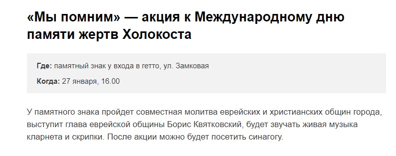 СОВМЕСТНАЯ МОЛИТВА С ИУДЕЯМИ... Дружба с врагами Христа - вражда против Бога![]() 27 января православные священники и прихожане гродненских храмов вместе с членами городской еврейской общины, а также представителями римо-католического и греко-католического «духовенства», почтили память жертв Холокоста, приняв участие во всемирной акции «Мы помним» в Гродно. Накануне экуменическое мероприятие было презентовано, как совместная молитва еврейских и христианских общин города. ![]() «Мы собрались, чтобы почтить память жертв Холокоста, а также вспомнить евреев гродненской общины. Тех, что погибли и тех, что выжили во время тех страшных событий. Мы хотим, чтобы в обществе была память», — рассказал представитель Ассоциации иудео-христианского диалога «Shomer — International» в Беларуси Евгений Колодин Об истории памятной доски на входе в гетто №1 рассказывала краевед Марина Шепелевич. Участник акции клирик Гродненского Свято-Покровского собора протоиерей Владимир Петручик рассказал об отношении Церкви к этому событию: "Каждое зло, каждое лишение человека жизни и тут неважно, какая это будет национальность, возраст, пол, — это однозначно зло, это преступление. Во всех религиях говорится, что лишение человека жизни — это грех. И, с одной стороны, конечно, тяжело, когда мы собираемся на подобные мероприятия. Но, с другой стороны, в этом тоже есть плюс. В наше сложное время, когда беготня, когда уходят люди, которые помнили эти моменты истории, такие мероприятия дают возможность нашей душе не оставаться черствой". Прим.Ред. - Совместные молитвы с врагами Христа губят душу. Кроме того, в жидохабадской религии лишение человека жизни - грех, но людьми там считаются только иудеи, а неиудеи - это животные в образе людей, экскременты... И священник не может этого не знать, а значит лукавит. ![]() ![]()