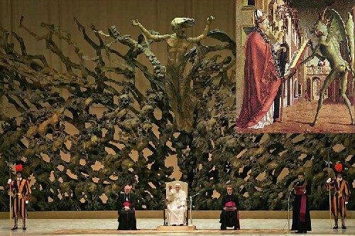благословить всех присутствующих: «Господь, отец всего человечества, и отче всех конфессий». Излишне говорить, что такое заявление крайне кощунственно даже с точки зрения католической ереси. Есть истинная Церковь Христова. Все остальные «христианские конфессии» являются ложными. Не говоря уж о том, что папа-иезуит назвал Господа отцом вообще всех конфессий: то есть он утверждает, что это Бог породил и ложь язычества, и ложь иудейства, и даже ложь сатанинских сект, которые на Западе являются вполне себе уважаемыми «конфессиями». В той же Америке «церковь Люцифера» даже