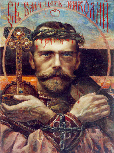 Честному Кресту, и Богородичного, без революции, богоборчества и модернизма:Спаси, Господи, люди Твоя, и благослови достояние Твое, победы Благоверному Императору нашему Николаю Александровичу на сопротивныя даруя, и Твое сохраняя Крестом Твоим жительство. Слава: Вознесыйся на Крест волею, тезоименитому Твоему новому жительству щедроты Твоя даруй, Христе Боже: возвесели силою Твоею Благовернаго Императора нашего Николая Александровича, победы дая Ему на сопостаты, пособие имущу Твое оружие мира, непобедимую победу. И ныне: Предстательство страшное и непостыдное, не презри Благая молитв наших, Всепетая Богородице: утверди Православных жительство, спаси Благовернаго Императора нашего Николая Александровича, Емуже повелела еси царствовати, и подаждь Ему с небесе победу, зане родила еси Бога, едина благословенная. «Благословляю верных Русских людей, поднимающихся на защиту Веры, Царя и Отечества, и проклинаю вас, изменники!» Сщмч. Патриарх Ермоген «В очах Божиих нет лучшей власти, чем власть Православного Царя». Святой преп. Серафим Саровский «Как религия бывает Христианской или нехристианской, так и политика – Христианской или нехристианской. Христианская политика, как неизменно учит Церковь устами Святых Отцов, - есть осуществление Богом установленной монархической идеологии. «Царя чтите» (2 Пет.2:7)» вот и вся наука для членов государства, или, как называют одним словом, политика Апостольская и Христианская». Святитель Филарет Московский «Честь, принадлежащая Царю, не может без святотатства быть отнесена подданному». Святитель Филарет Московский Православный Царь получает помазание от Духа Святаго, президент получает власть от слуг антихриста и