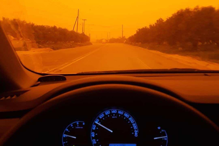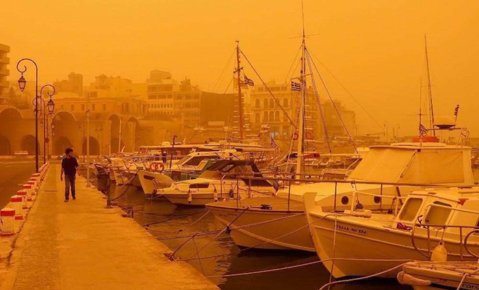 «Невероятное явление погоды наблюдается на Крите. Африканская пыль покрыла остров, небо покраснело. Все напоминает пустыню, в порту Ираклиона и в Агиа Пелагия море "исчезло” с горизонта», — сообщает местное издание Сretalive. Из-за погодных условий люди стараются поменьше выходить из дома, учебные заведения закрыты. По словам греческого метеоролога Манолиса Ленкаса, пыльная буря из Африки является «очень серьезным случаем». Причиной такого явления могло стать высокое давление. Он отмечает, что движение воздуха началось с побережья Северной Африки и с запада пришло на остров. В результате, теплые воздушные массы принесли с собой пыль. ![]() ![]()