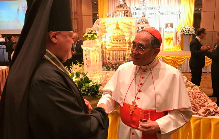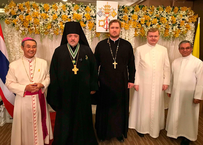 НЕ СТОИТ ОПРАВДЫВАТЬ... Годовщина папской интронизации с участием православных19 марта по приглашению Апостольского Нунция в Таиланде "архиепископа" Пауло Тсчанг Ин-Нам архимандрит Олег (Черепанин), Представитель Русской Православной Церкви в Таиланде и Благочинный Патриарших приходов в Королевстве в сопровождении иерея Иоанна Мороза, и.о. секретаря Патриаршего благочиния в Таиланде и диакона Константина Иващенко посетил прием по случаю 5-й годовщины интронизации и пантификата Папы Римского Франциска.