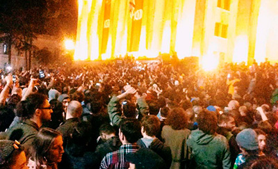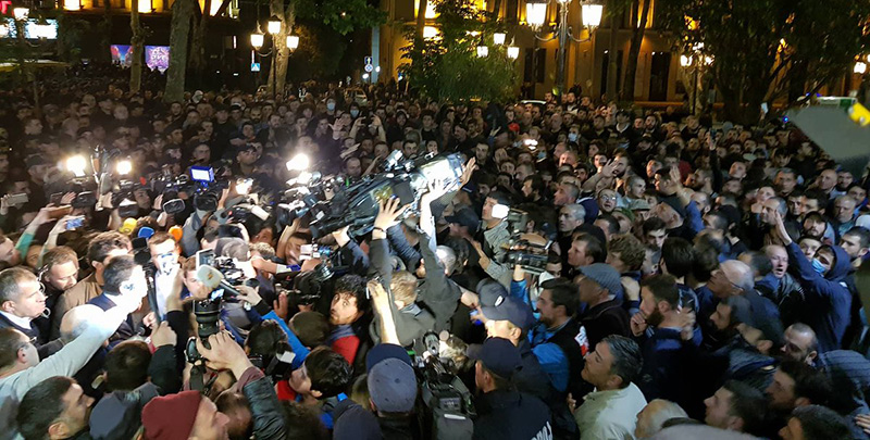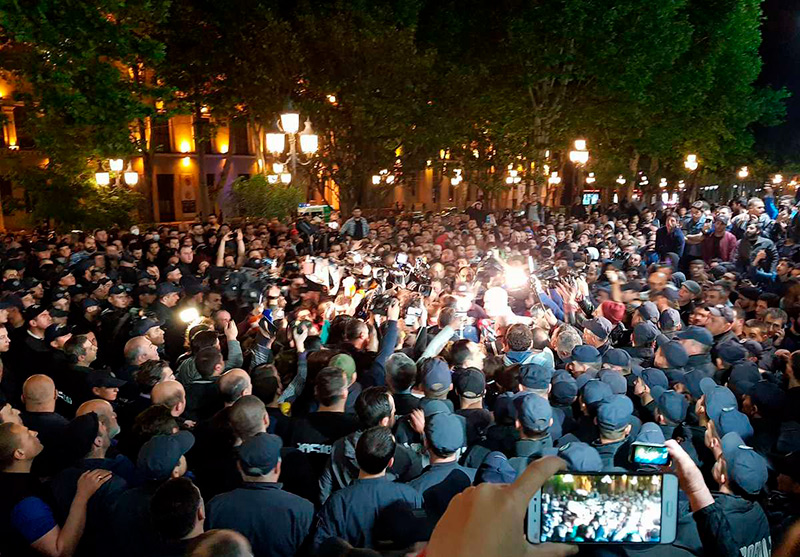 Ситуация продолжает оставаться накалённой, тысячи людей на проспекте, мобилизован спецназ, патрульная полиция, приведены в готовность водомёты, передаёт телекомпания «Рустави 2». Министр внутренних дел Георгий Гахария всё ещё проводит встречу с организаторами протестов.