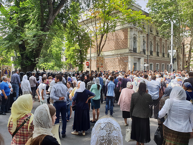 перекресток и дошли до цента города, передает "Интерфакс".Судя по видеокадрам с места событий, полиция на руках уносила протестующих мужчин и женщин, которые встали на колени на пути шествия и пытались остановить его молитвами. В итоге участники марша беспрепятственно прошли около 3 км, установив рекорд подобных мероприятий в Кишиневе. Во все предыдущие годы участникам марша удавалось пройти не более одного километра. Нынешний марш является и самым многочисленным. По оценкам полиции, в нем принимают участие около 500 человек. Ранее Митрополит Кишинева и Всея Молдова Владимир осудил проведение марша и потребовал от администрации Кишинева не разрешать его проведения. 12 мая Православная церковь провела марш в защиту семейных ценностей. В нем принял участие и президент Игорь Додон с семьей, который высказался в защиту традиционной семьи и православных ценностей. ФОТО И ВИДЕО ПРОТИВОСТОЯНИЯ: