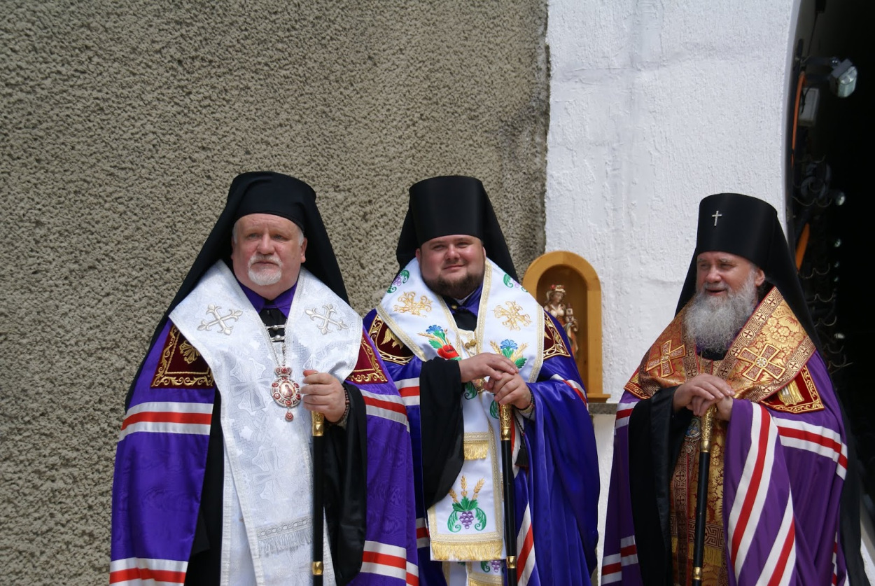 Совместное богослужение, на котором присутствовал президент Украины Петр Порошенко, возглавили архиепископ Мукачевский и Ужгородский УПЦ МП Феодор (Мамасуев), раскольнический "епископ" Ужгородский и Закарпатский УПЦ КП Варсонофий и "епископ" Мукачевский и Карпатский УАПЦ Виктор (Бедь).