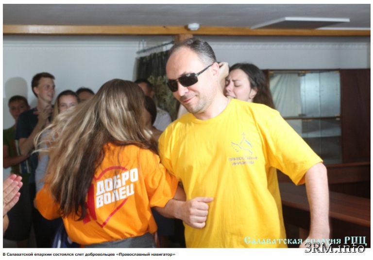 В рамках слета был проведен цикл образовательных программ, дискуссионных и проблемно-ценностных игр (на фото: и уже немолодого, точнее молодого, но в душе, того же алтарника и «добровольца» в темных очках. У него на животе надпись «Карманник с детства») спортивного калейдоскопа.