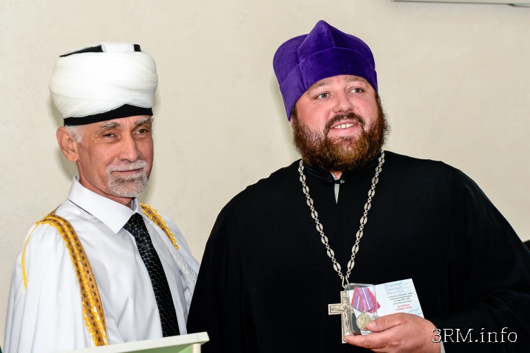председателя ДУМ г.Салават с днем рождения по исламскому календарю."Дорогие братья и сестры, я всех вас сердечно и искренне приветствую в этот великий праздник ислама Курбан-Байрам. Хотел бы в первую очередь поздравить Вас, досточтимый муфтий Рамиль хазрат, с днем Вашего рождения. Я знаю, что Вы дважды празднуете день рождения и сегодня так совпало, что (это случилось — ред.) в этот великий праздник ислама. Я нахожу в этом перст, голос и благословение Всевышнего. Бисмилля рахман рахим!" (перевод — «во имя Аллаха Милостивого и Милосердного» — ред.) Епископ Николай пожелал «старшему брату», как он назвал муфтия: "крепкого здоровья, многая лета, ИНШАЛЛА (!!!) и конечно же помощи Всевышнего". Для справки: